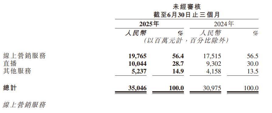 直播业务收入同比增长8%至100亿元,这部份的增长相比其他业务,增速偏低。其他服务收入由2024年同期的42亿元增加25.9%至2025年第二季度的52亿元,主要是由于电商业务及可灵AI业务的增长。二季度,电商GMV同比增长17.6%至3589亿元;泛货架电商GMV持续超整体大盘增长,占总电商GMV超过32%。